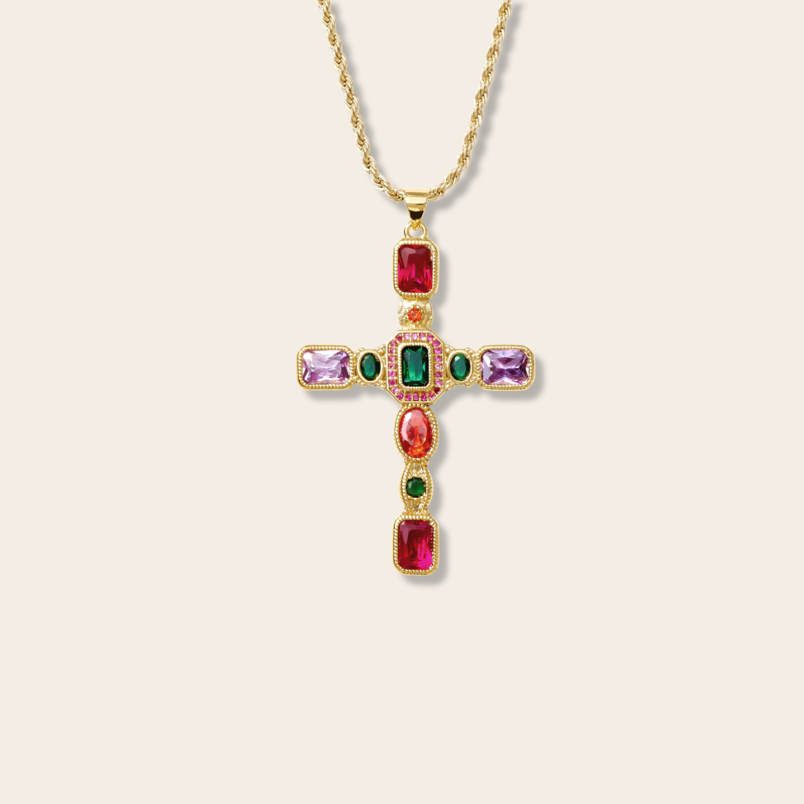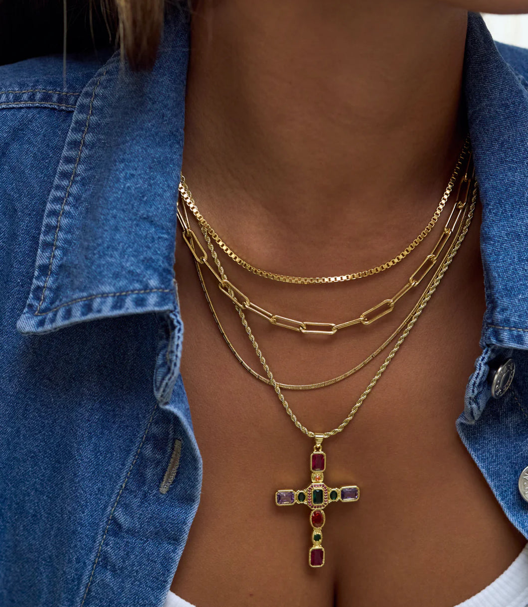 Výrazný náhrdelník s barevným křížkem, který dodá outfitu osobitost, energii a moderní statement vibe. Ideální jako dominantní kousek i pro stylové vrstvení.